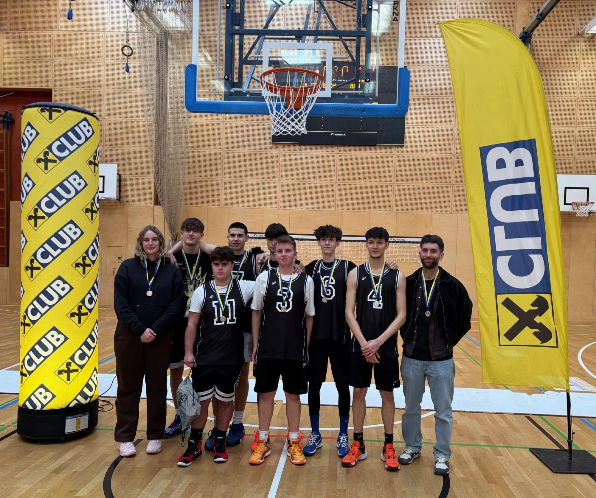 Im am 8.Jänner in Mistelbach veranstalteten Finalturnier gab sich der Favorit (BORG Mistelbach) keine Blöße und spielte seine Routine voll aus. Mit einem klaren Sieg im Kreuzspiel gegen die HTL Mödling (47:41) fixierte das Team von Coach Weissenböck, in dem einige Spieler bereits B-Liga Luft schnuppern durften, den Finaleinzug. Im anderen Kreuzspiel ging es bis in die Schlussminute ganz eng her. Das RG Maria Enzersdorf lag gegen die HAK Bruck/Leitha nach Viertel 1 mit 12:9 in Front. Zur Halbzeit stand es dann +1 für die Brucker und vor dem Schlussabschnitt unentschieden. Im letzten Viertel sicherten sich die körperlich überlegenen Brucker mit einem 6-0-Run die Führung und gaben diese bis zum Ende nicht mehr her. Im kleinen Finale sicherte sich die HTL Mödling gegen das RG Maria Enzersdorf mit einem klaren 71:45 Sieg die Bronzemedaille. Die stark ersatzgeschwächten Maria Enzersdorfer konnten nach dem anstrengenden Kreuzspiel nicht mehr zulegen und mussten sich mit Platz 4 begnügen. Im Finale lag der Favorit aus Mistelbach zwar rasch in Front konnte sich aber in Halbzeit 1 noch nicht entscheidend absetzen (Spielstand: 33:21). Die Pausenansprache von Coach Weissenböck, dass man noch nicht in Kärnten sei und man weiter konzentriert agieren müsse, zeigte dann Wirkung und die Mistelbacher zogen dann auf 51:29 vor dem Schlussabschnitt davon. Im letzten Viertel bekamen die zahlreich erschienen Zuschauer noch ein paar Leckerbissen in Form von Dreiern und Dunkings präsentiert, der klare 66:38 Sieg stand zu diesem Zeitpunkt aber bereits fest.