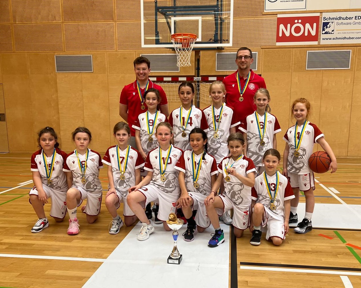 Ein spannender Finaltag fand in Mistelbach für unsere WU10 Teams statt. Mistelbach Mustangs und Blue Devils spielten um Platz 4 und 5, das Spiel ging verdient an die Mistelbacherinnen. Der Kampf um die Medaillen zwischen drei Teams – Traiskirchen Lionesses, Basket Duchess und UDW Alligators – hätte nicht spannender sein können. Das erste Spiel zwischen Alligators und Duchess holten die Deutsch Wagramerinnen. Klosterneuburgerinnen spielten sofort gegen Lionesses weiter und feierten einen +1 Sieg. Nach der Niederlage waren die Lionesses gefordert und das Team startete das Spiel gegen UDW Alligators beeindruckend. Alligators konnten bis zum Schlusspfiff den Rückstand noch etwas aufholen, aufgrund des hohen Sieges im letzten Spiel jubelten Traiskirchen Lionesses über Gold. Silber ging an Basket Duchess, Bronze an UDW Alligators.